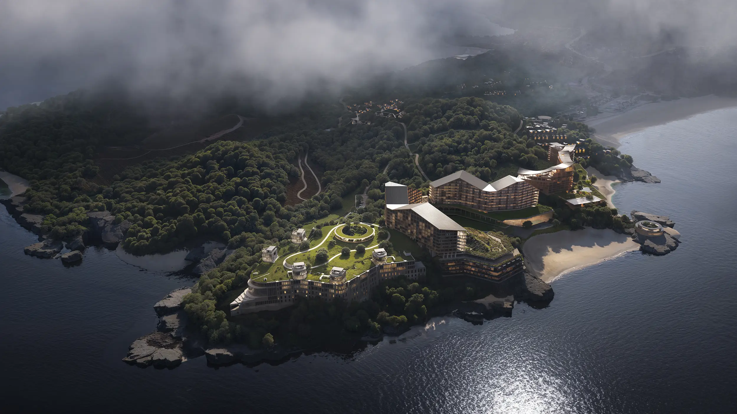 Resort in South Korea is a visualization project developed for Studio Puisto, focusing on a resort architecture that exists in close dialogue with the surrounding landscape. The building volumes are carefully integrated into the terrain, reinforcing a sense of calm, continuity, and connection to place.