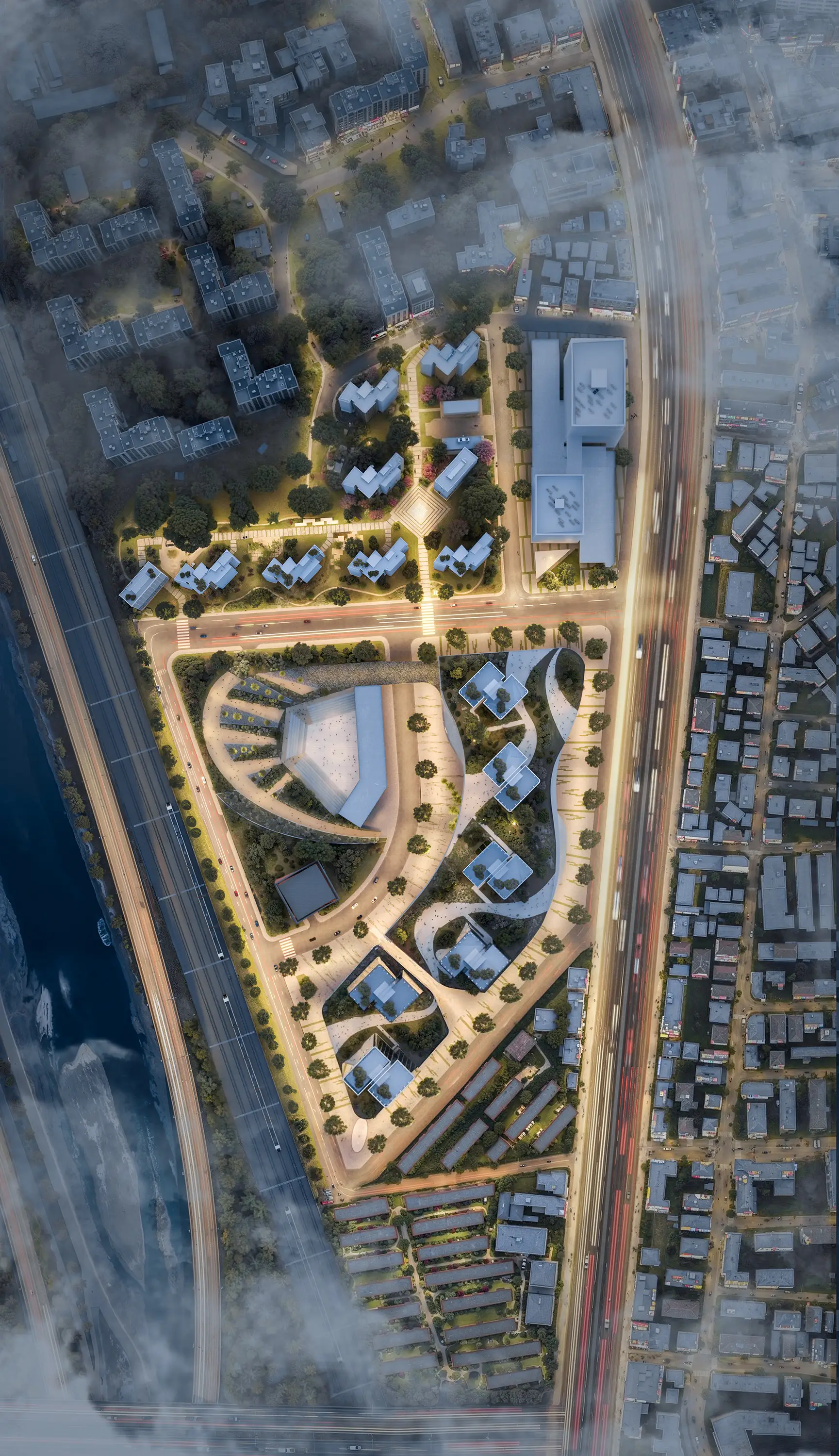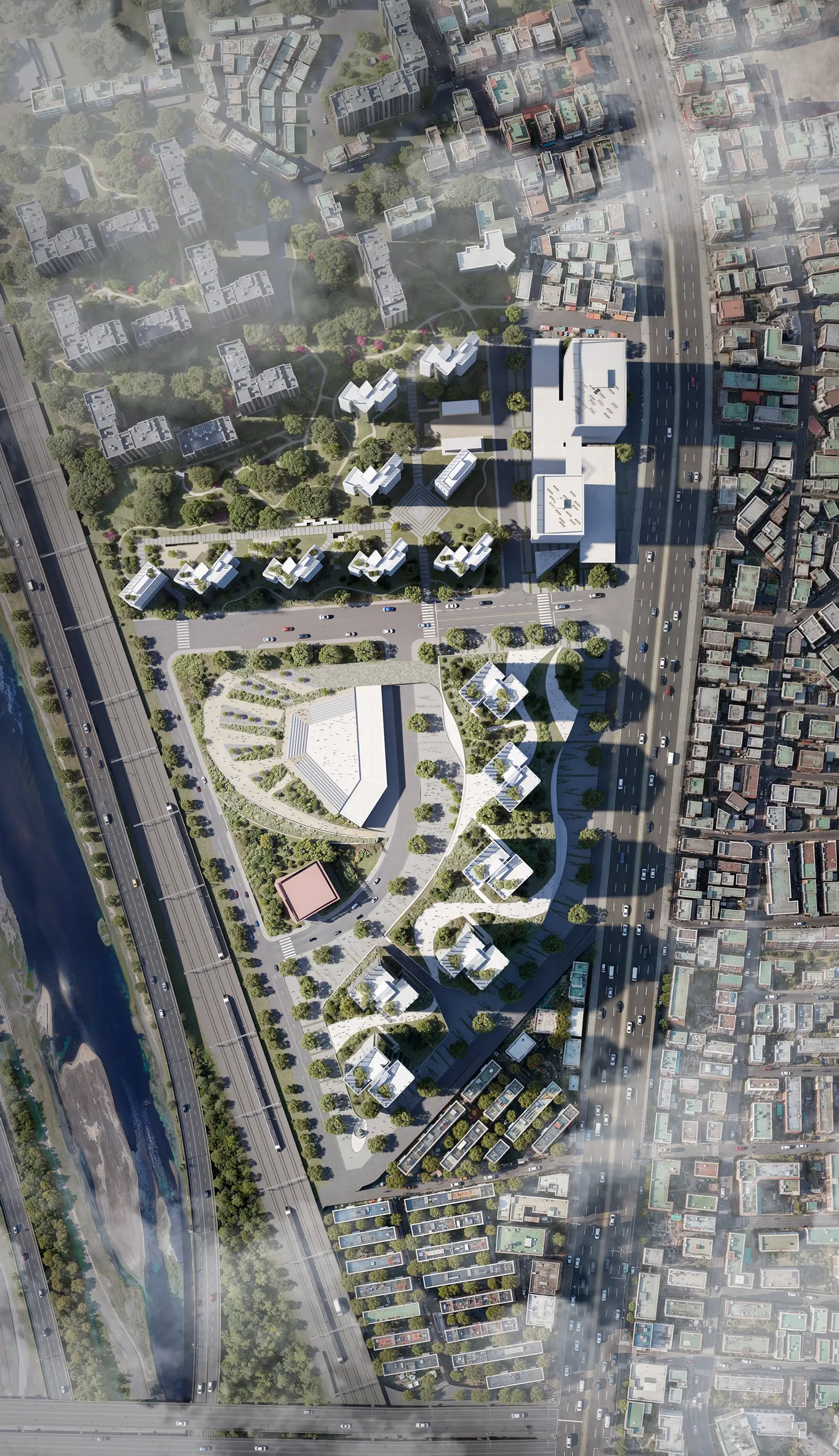 Our 3D architectural site plan renderings offer a macro perspective, illustrating development scale while seamlessly integrating new and existing urban infrastructure elements. This approach enables efficient planning of transportation hubs, public areas, and green spaces.